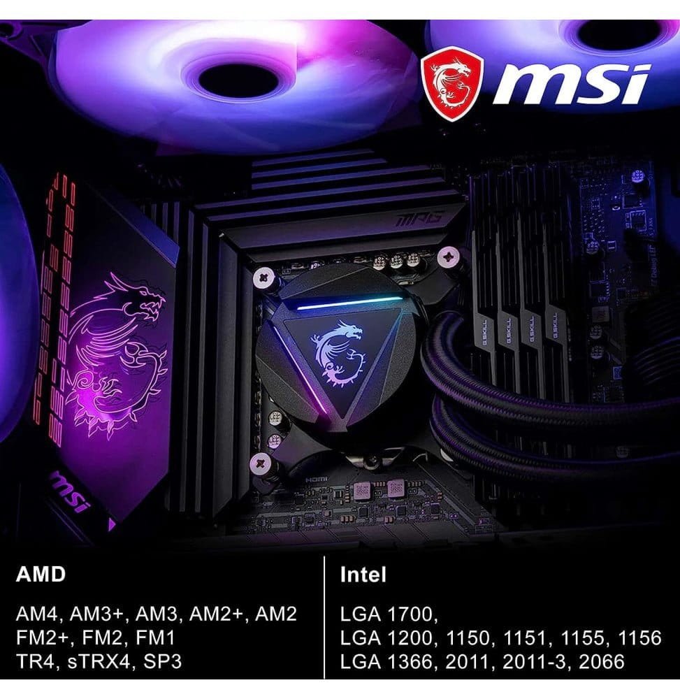 En résumé, le kit de watercooling MSI MAG CORELIQUID 360R V2 est une solution de refroidissement liquide haut de gamme, offrant des performances de refroidissement efficaces, un éclairage RGB personnalisable et une compatibilité étendue avec une variété de processeurs.