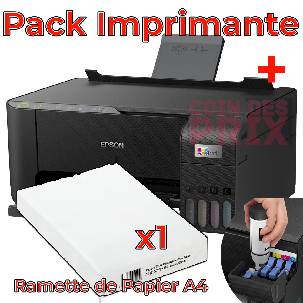 Accueil » Boutique » Imprimante & Scanner » Imprimante » Réservoirs rechargeables » Pack Imprimante Epson L3250 + Ramette de Papier A4
